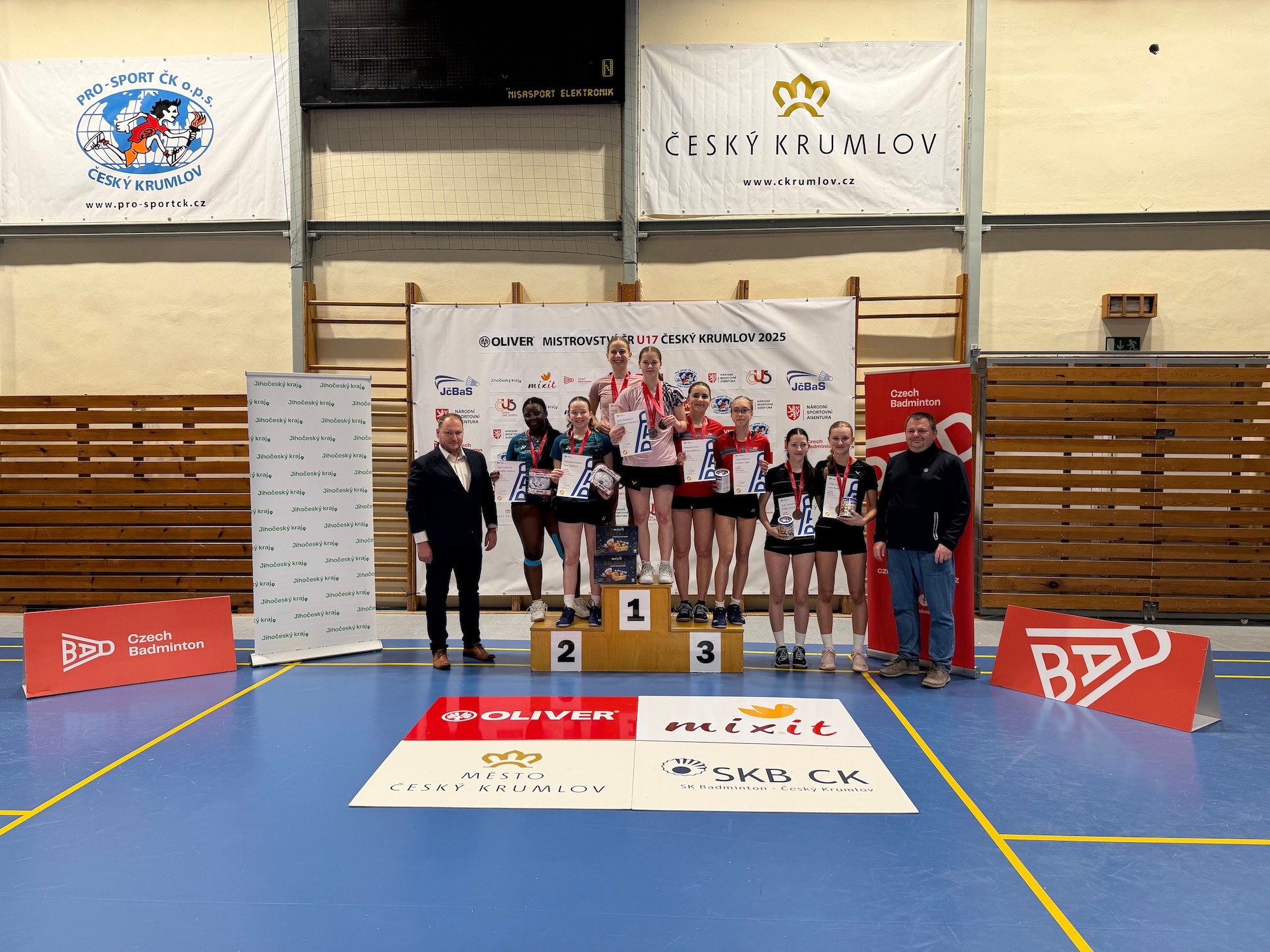 Turnaj přinesl do Českého Krumlova špičkový mládežnický badminton. Na kurtech byla vidět obrovská bojovnost, kvalitní výkony a medailová energie. Slavnostní předávání cen proběhlo za účasti místopředsedy Českého badmintonového svazu pana Václava Drašnara a předsedy našeho klubu Radka Votavy, což dodalo celému ceremoniálu důstojnou atmosféru.
